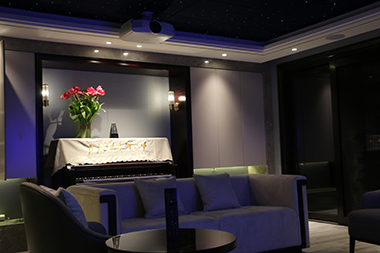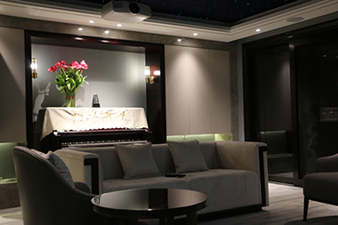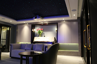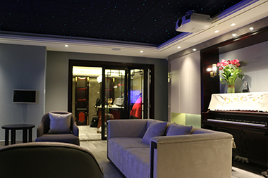 業(yè)主一家對影音需求很高,所以在地下室有一個專門的房間作為私人影院。我們采用了7只MartinLogan入墻式揚聲器+1只James EMB1000低音炮組成7.1環(huán)繞音效,Marantz功放搭配威動在線影庫,Espon8300投影機配合133寸JK電動幕布。