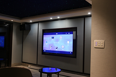 影院設(shè)備全部接入到Contorl4智能中控系統(tǒng),通過一支搖控器,一鍵進入影院模式。每一個房間的電視機也同樣接入到智能系統(tǒng),通過同樣的搖控器,業(yè)主可以很方便地對客廳和臥室電視機進行操控。