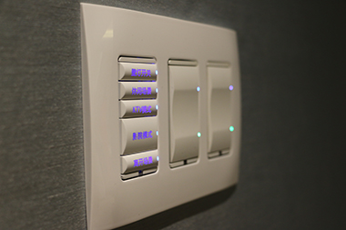 所有的燈光控制采用Control4的美規(guī)組合式面板進行控制,除了墻壁開關(guān)進行操作之外,還可以通過墻面開關(guān)設(shè)置的場景按鍵進行一鍵式場景控制,也可以通過觸摸屏、搖控器或自己的手機App進行直觀的控制。