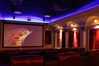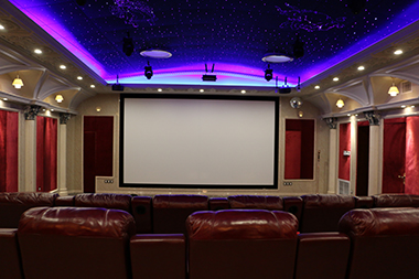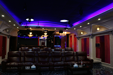 在別墅的地下負一層220平方的空間里,140平方打造成7.2.4聲道杜比全景聲家庭影院,視聽室進行了精密的聲學(xué)空間規(guī)劃、聲學(xué)設(shè)計裝修材料設(shè)計等,以及一個80多平方的酒吧智能燈控系統(tǒng)。項目采用美國Control4智能家居中控為主導(dǎo),整合了家庭影院所有設(shè)備以及全宅的智能燈光控制,從而達到一鍵式操作系統(tǒng)。