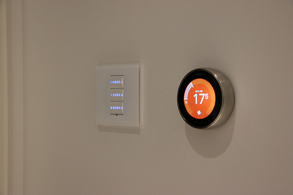 ? ? ?在入戶門口,設(shè)置了一個(gè)總線場景面板,設(shè)置了回家模式,會客模式,離家模式。