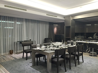 當(dāng)業(yè)主進(jìn)入家門時(shí),通過(guò)指紋鎖身份識(shí)別后,安防系統(tǒng)撤防,家里燈光智能響應(yīng),燈光自然切入到回家場(chǎng)景,客廳HIFI背景音樂(lè)啟動(dòng),同時(shí)可以擴(kuò)展音樂(lè)到所有房間以及分區(qū)播放音樂(lè)曲目。當(dāng)就餐時(shí),只需在control4觸控專屬屏上一鍵就餐模式,燈光調(diào)到最舒適的就餐環(huán)境,溫馨浪漫的就餐氛圍。