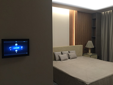 全宅智能燈控采用美國(guó)Control4智能家居控制系統(tǒng),對(duì)客廳、臥室、書房、餐廳、休息陽(yáng)臺(tái)的燈光都做了精心的智能設(shè)計(jì),每個(gè)房間的筒燈、壁燈、燈帶以及窗簾燈的控制,每一個(gè)燈光的開(kāi)閉和燈光場(chǎng)景的聯(lián)動(dòng)都是融合了原本的燈光設(shè)計(jì),根據(jù)業(yè)主最終項(xiàng)目使用了7個(gè)control4觸摸專屬屏。在回家之前,APP遠(yuǎn)程控制,通過(guò)手機(jī)一鍵啟動(dòng)回家模式,家里電器、空調(diào)溫度、窗簾等得到智能響應(yīng),電視打開(kāi),空調(diào)溫度調(diào)到適宜溫度,客廳窗簾緩緩拉開(kāi)。
