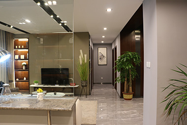 項目采用美國Control4無線控制系統(tǒng),為了整體的美觀效果,我們使用的是歐規(guī)無線場景面板,銷售人員通過指紋進入到樣板間,在入戶門處,設置了一個場景面板(迎賓模式、回家模式、離家模式);一鍵迎賓模式,燈光就會逐漸依著順序慢慢亮起,電動窗簾緩緩拉開,空調自動調到舒適的溫度,給整個房間營造了一個靚麗的氛圍。同時這一切也可遠程操作,實時觀察到樣板間的情況。