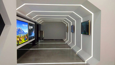 ? ? ? 我們通過對現(xiàn)場實(shí)際情況考察,面積大小,以及實(shí)現(xiàn)的功能和需求,給甲方多次溝通協(xié)商后,最終確定采用美國Control4智能控制系統(tǒng).對整個展館的燈光進(jìn)行了場景的控制,電腦也進(jìn)行了開關(guān)的控制,在入門口我們設(shè)置一個場景面板,照明全開場景、電腦全開場景、展館全開場景、離開場景等。項(xiàng)目除了對整個展廳燈光做了智能控制,擴(kuò)音設(shè)備、安防監(jiān)控、視頻系統(tǒng)也進(jìn)行了集中的控制,無論是面板、手機(jī)、觸控屏都可以一鍵控制整個展廳。