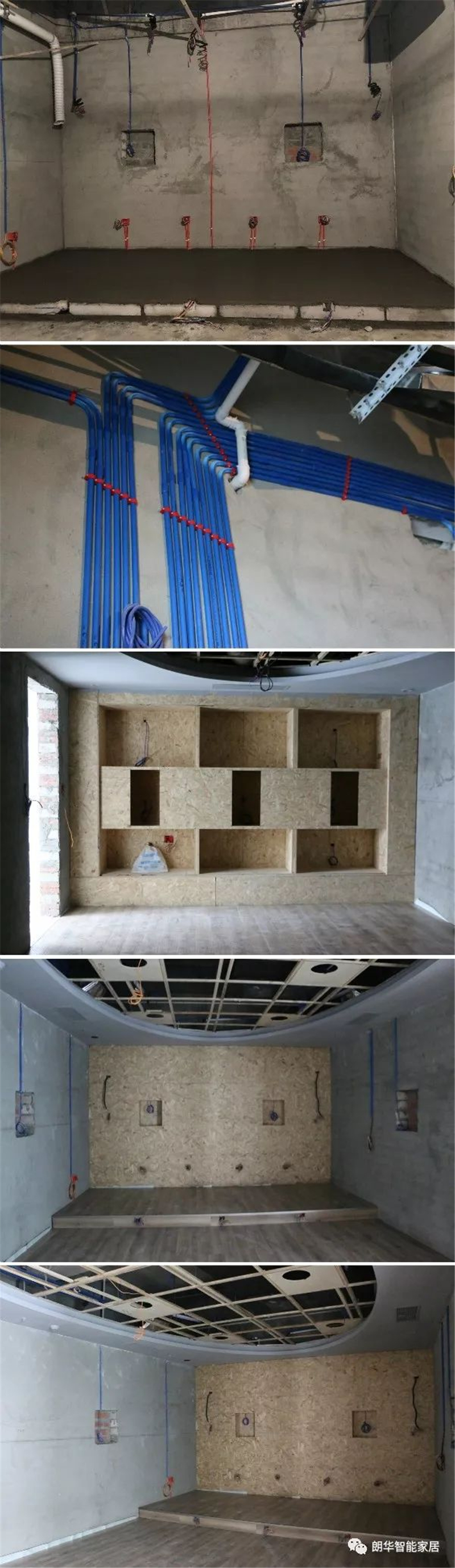 房間結(jié)構(gòu)改造→地面隔音施工→隔音墻體龍骨結(jié)構(gòu)→內(nèi)裝吸音棉→彈性減力墻→頂面隔音施工→封吸音裝飾面板→美學(xué)造型→設(shè)備安裝→音視頻調(diào)試→完工