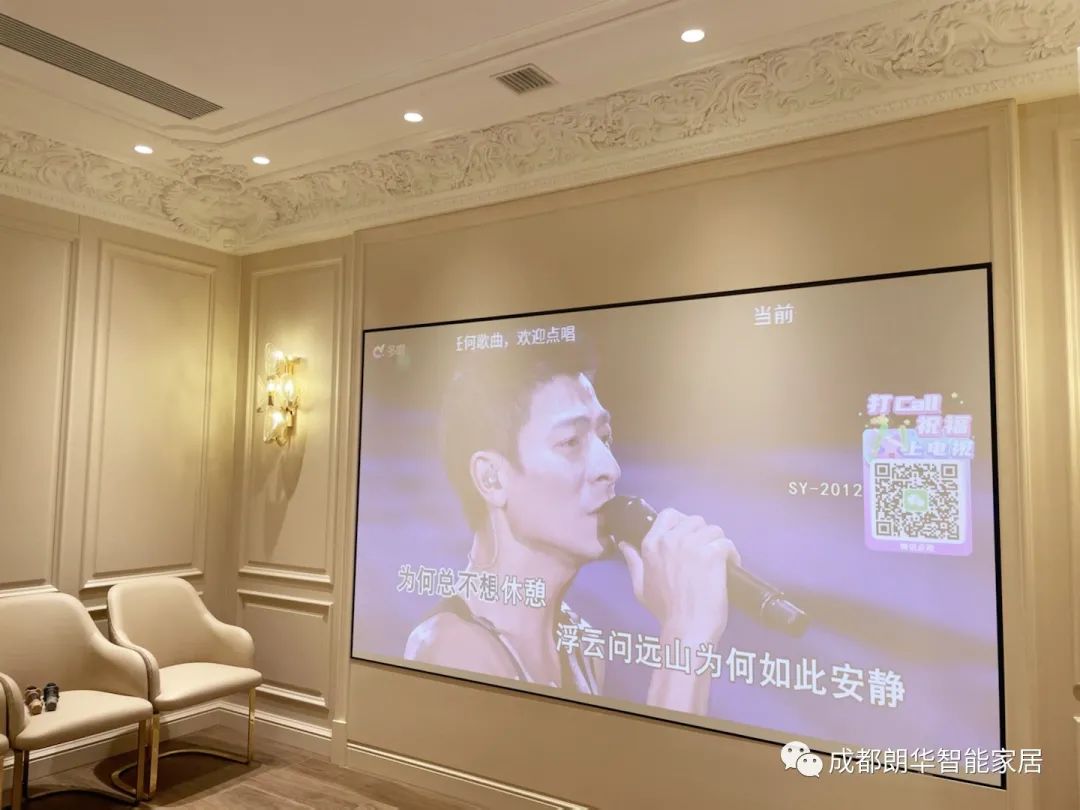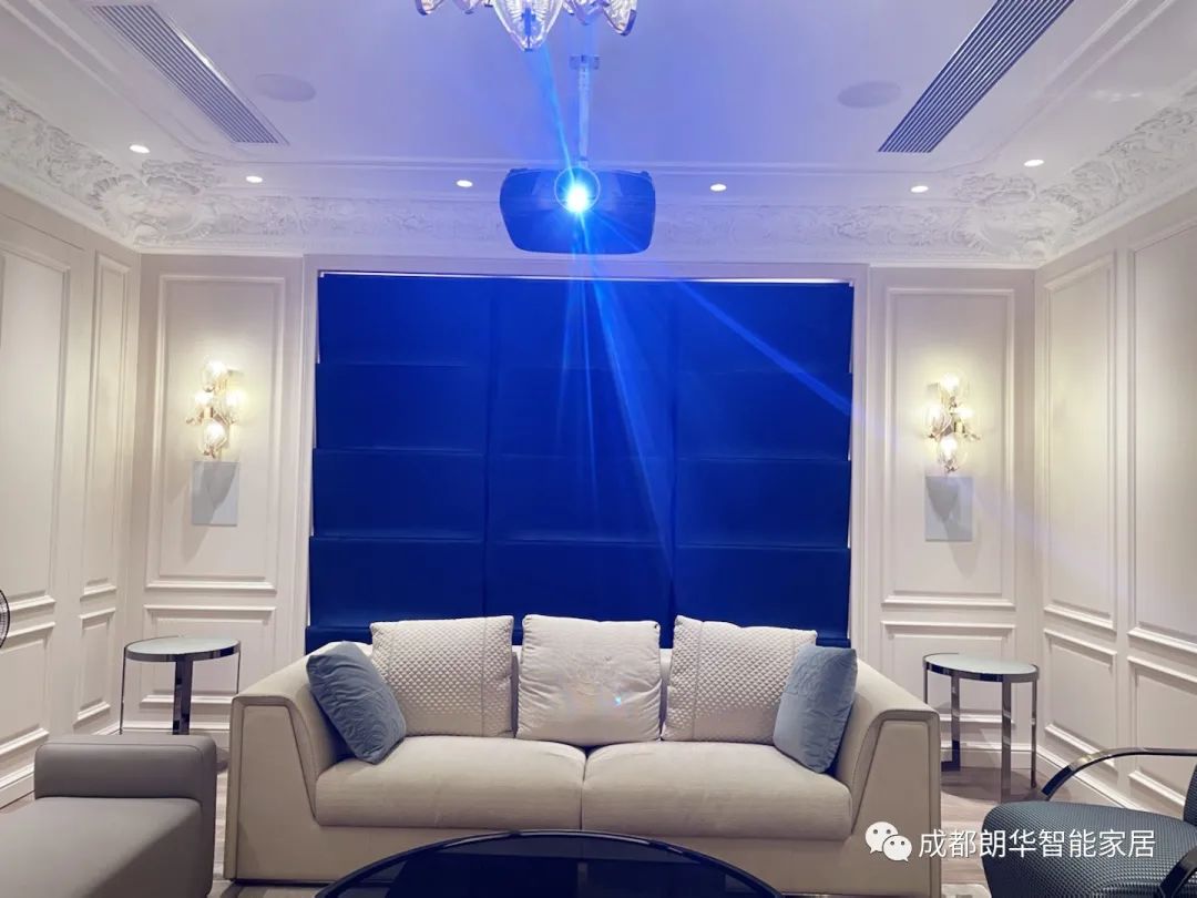 進(jìn)入影院時(shí),會(huì)先亮起一只燈,坐下拿起遙控器后燈光會(huì)自動(dòng)調(diào)至明亮,一鍵開啟觀影模式,投影儀開啟,幕布打開至觀影界面,開始播放影片后,燈光又會(huì)自動(dòng)調(diào)暗至適合看電影的亮度。Triad音箱隱藏安裝讓整個(gè)影院看著整潔漂亮,嵌墻音箱定制面罩無縫隱藏于墻面裝飾中,如果不走近看完全不知其中還隱藏著一對(duì)音箱。家庭影院在地下室區(qū)域,觀影時(shí)間如果門口有人到訪,可視對(duì)講可以即時(shí)接入門口畫面,不用起身就可以通話或者遠(yuǎn)程開門。