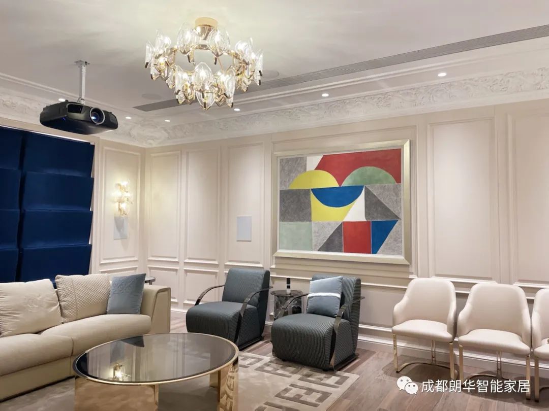 獨(dú)立影音室是能夠放松娛樂的一個(gè)家中寶藏地,由TRIAD BRONZE0系列打造的7.2.4全景聲私家影院,設(shè)計(jì)師采用7只美國(guó)TRIAD BRONZE0系列入墻式音箱和4只 BRONZE OPENROUND 吸頂天花環(huán)繞音箱搭配 2只10寸低音炮組成7.2.4環(huán)繞音效, MARANTZ SR-8015功放配上威動(dòng)智能影庫(kù)V8,愛普生9400投影機(jī).